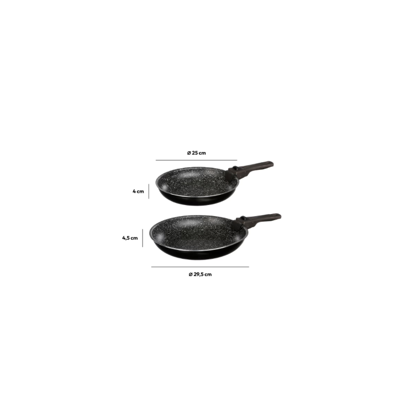 Lot de 2 poêles aluminium avec poignée amovible - Ø 24 cm & 28 cm, Tous feux, Gain de place