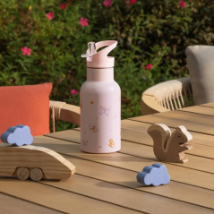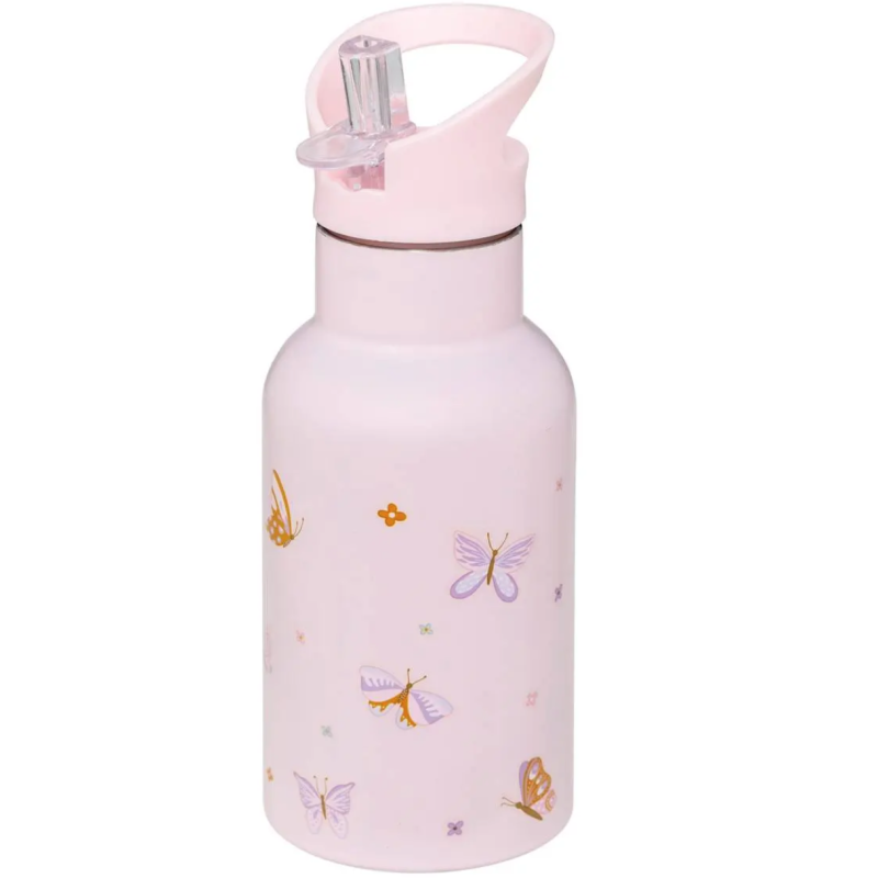 Le motif papillon sur fond rose apporte une touche rêveuse et féerique que les enfants vont adorer, tout en offrant une grande fonctionnalité : une bouteille solide, sûre et thermos, parfaite pour un usage quotidien.